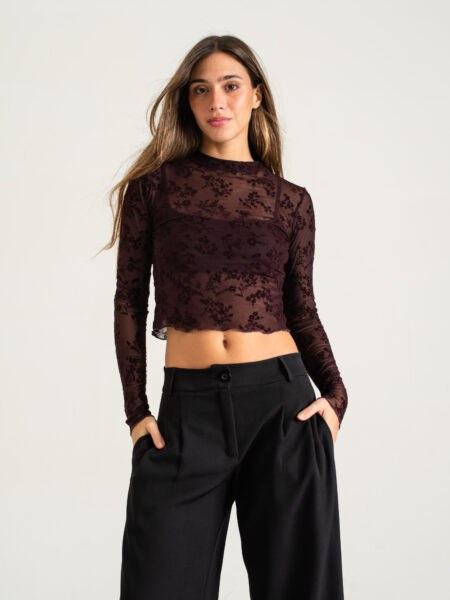 [02123] Top Buche ML Encaje Roanne con Aplique en Pecho