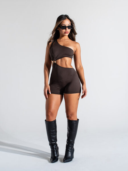 [06087] Catsuit Un Hombro con Aplique Dorado Microfibra